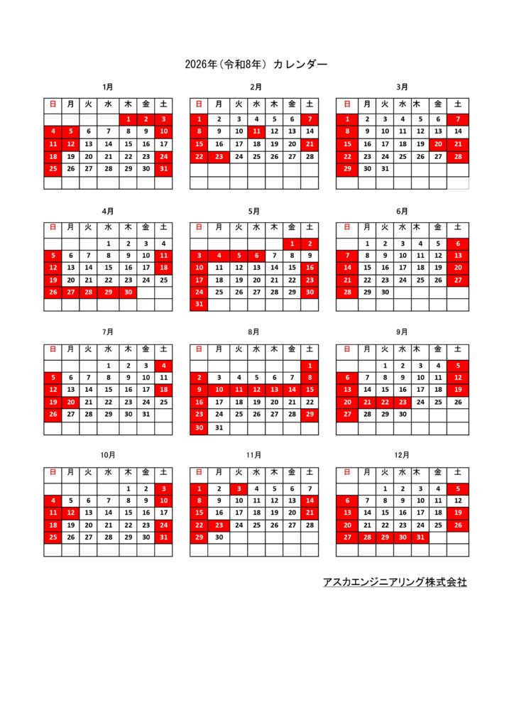 年間カレンダー